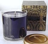 Voluspa Seasons Candlepot in Celebration. Composition: warm ebony wood, rich mahogany, Mirabelle peach and sweet peony 10-ounce candle in an elegant glass jar with extinguisher lid will burn for approximately 85 hours.